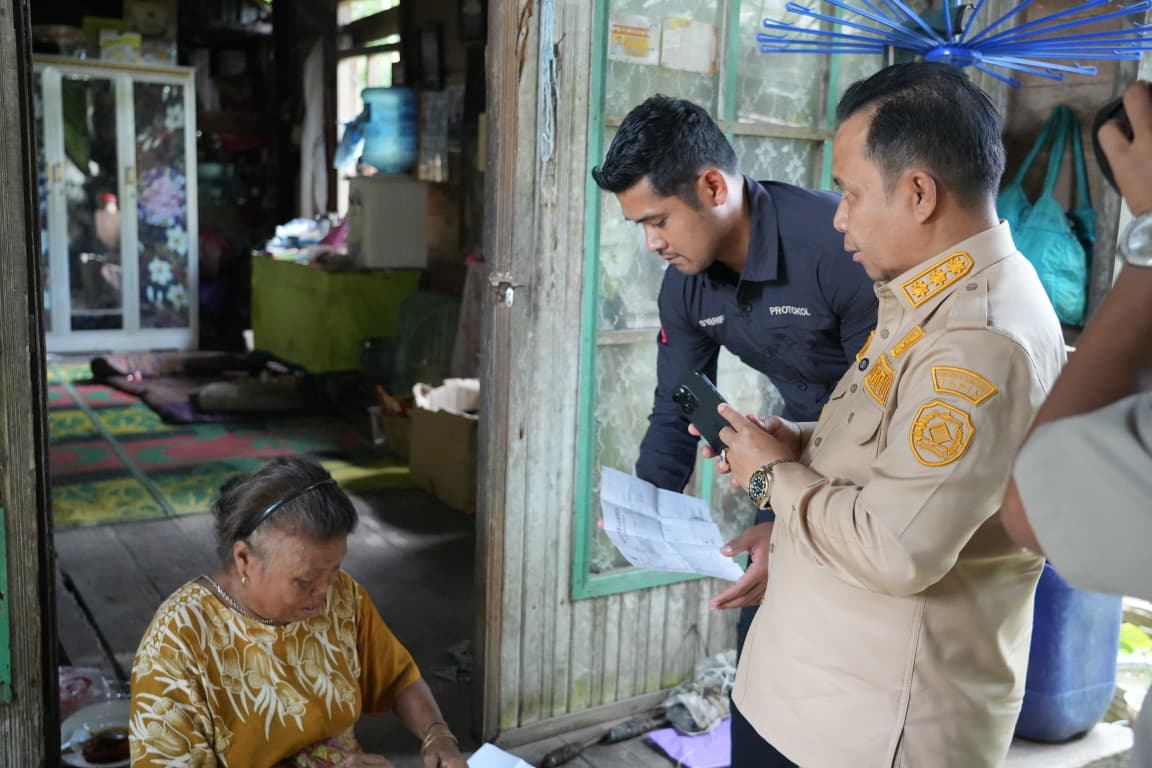 RANTAU,- Bupati Tapin H Yamani saat menyalurkan langsung bantuan program bedah rumah bagi warga kurang mampu di Kabupaten Tapin. Selasa (28/04/26).