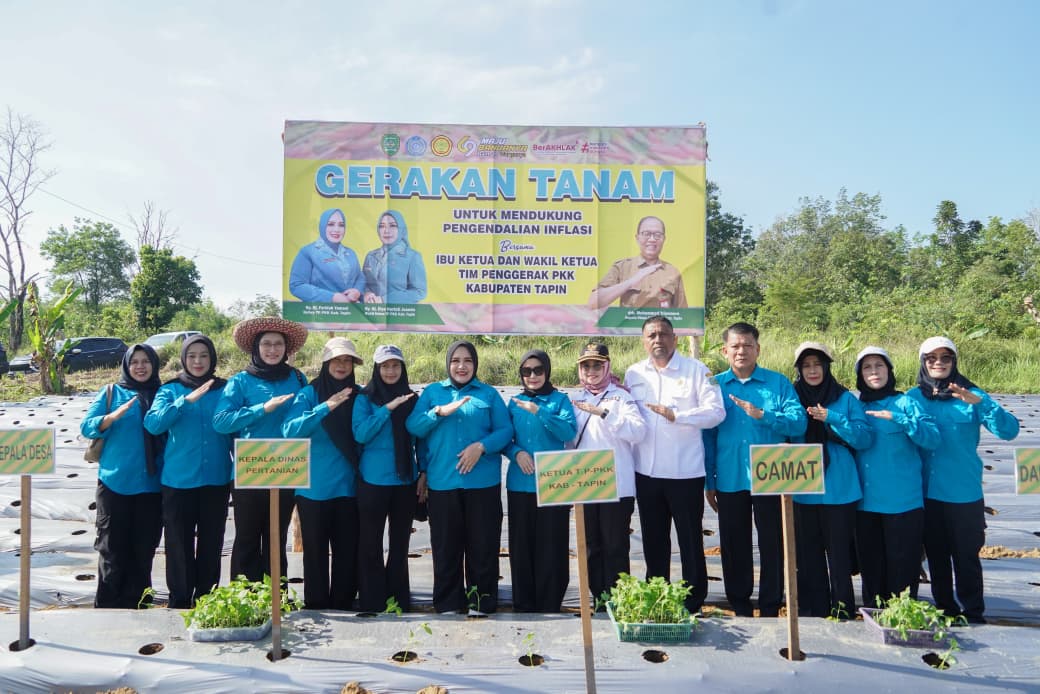 RANTAU,– Sebagai langkah nyata dalam mendukung kebijakan Pemerintah Daerah untuk menjaga stabilitas ekonomi, Tim Penggerak Pemberdayaan Kesejahteraan Keluarga (TP PKK) Kabupaten Tapin melaksanakan Gerakan Tanam komoditas hortikultura dan bahan pangan strategis. Kegiatan ini dipusatkan di Desa Salam Babaris sebagai bagian dari komitmen organisasi dalam mendukung program pengendalian inflasi daerah. Bertempat di Lahan KWT Wacana Desa Salam Babaris Kec. Salam Babaris, Rabu (29/04/2026).
