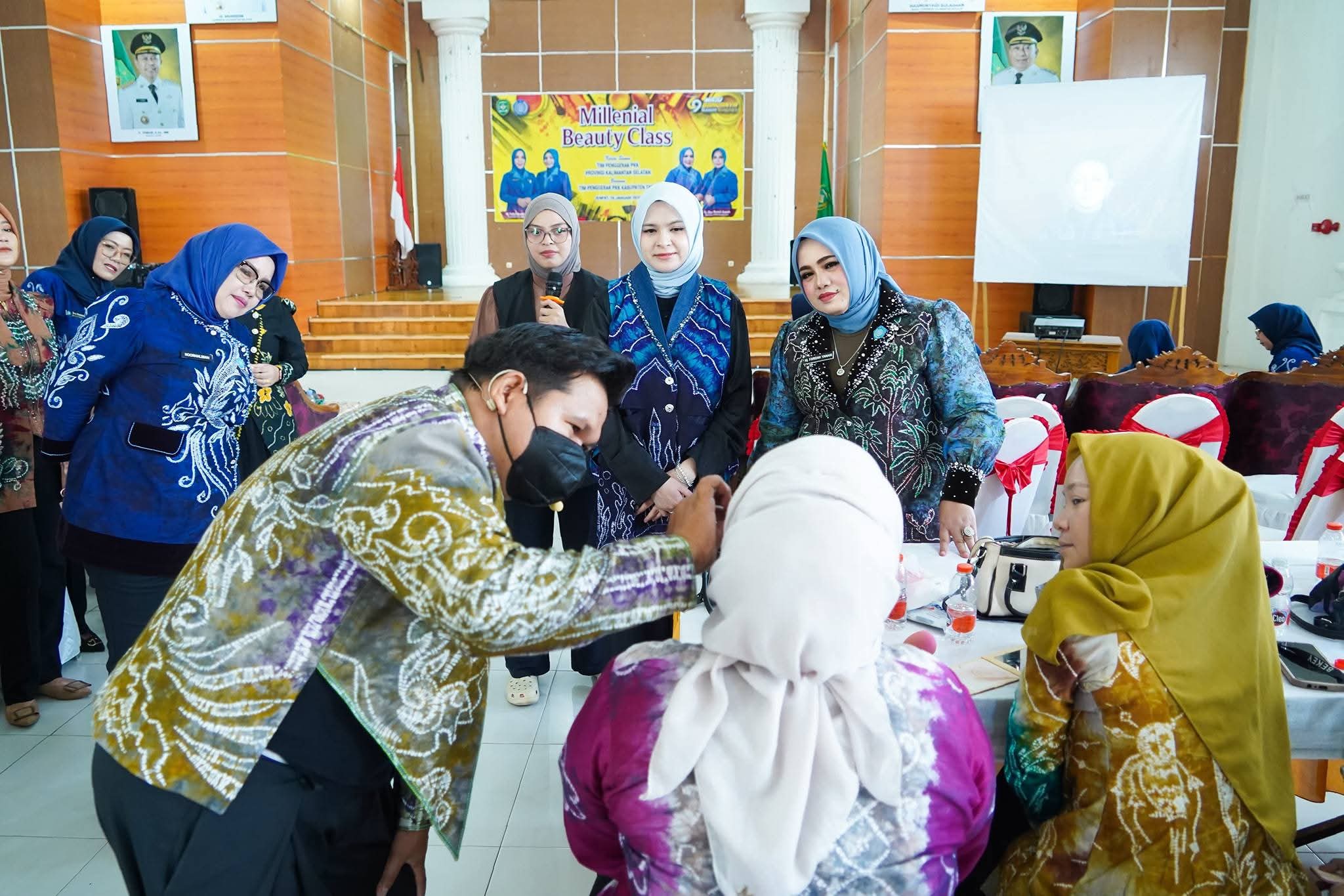 RANTAU,-'Ketua TP PKK Hj Faridah Yamani membuka kegiatan millenial beauty class, kerja sama wakil ke...