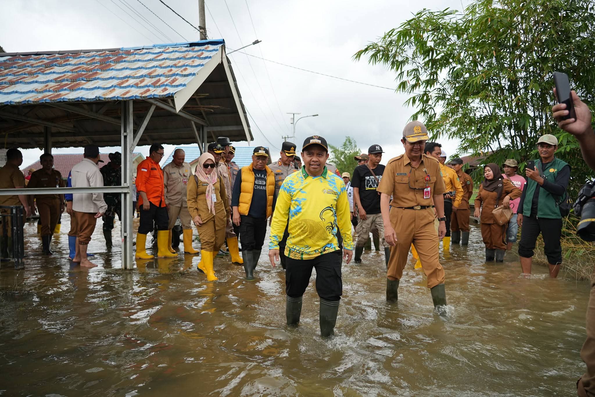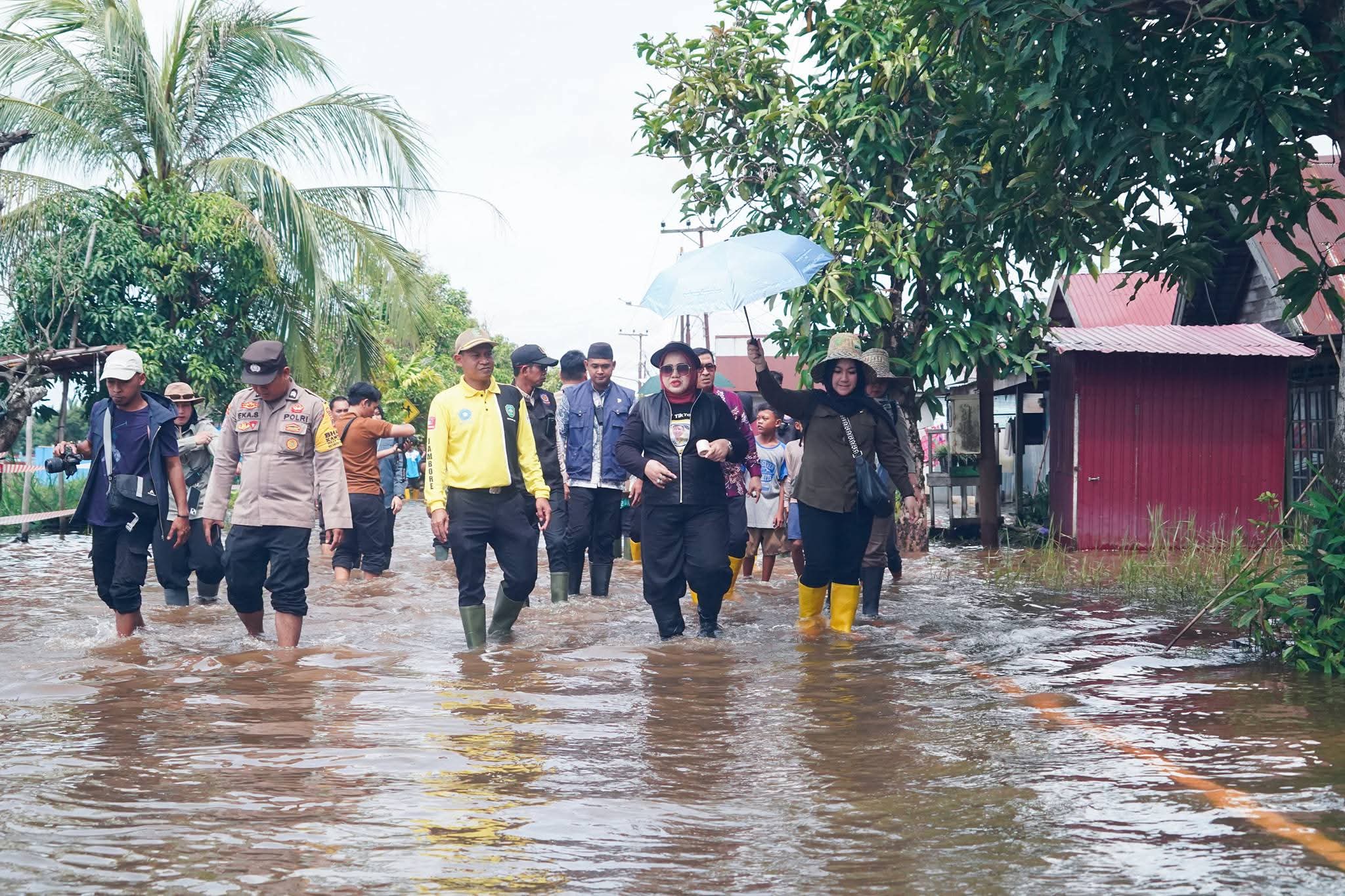 RANTAU,- Bupati Tapin H Yamani bersama pimpinan SOPD terkait, meninjau langsung lokasi banjir di beb...