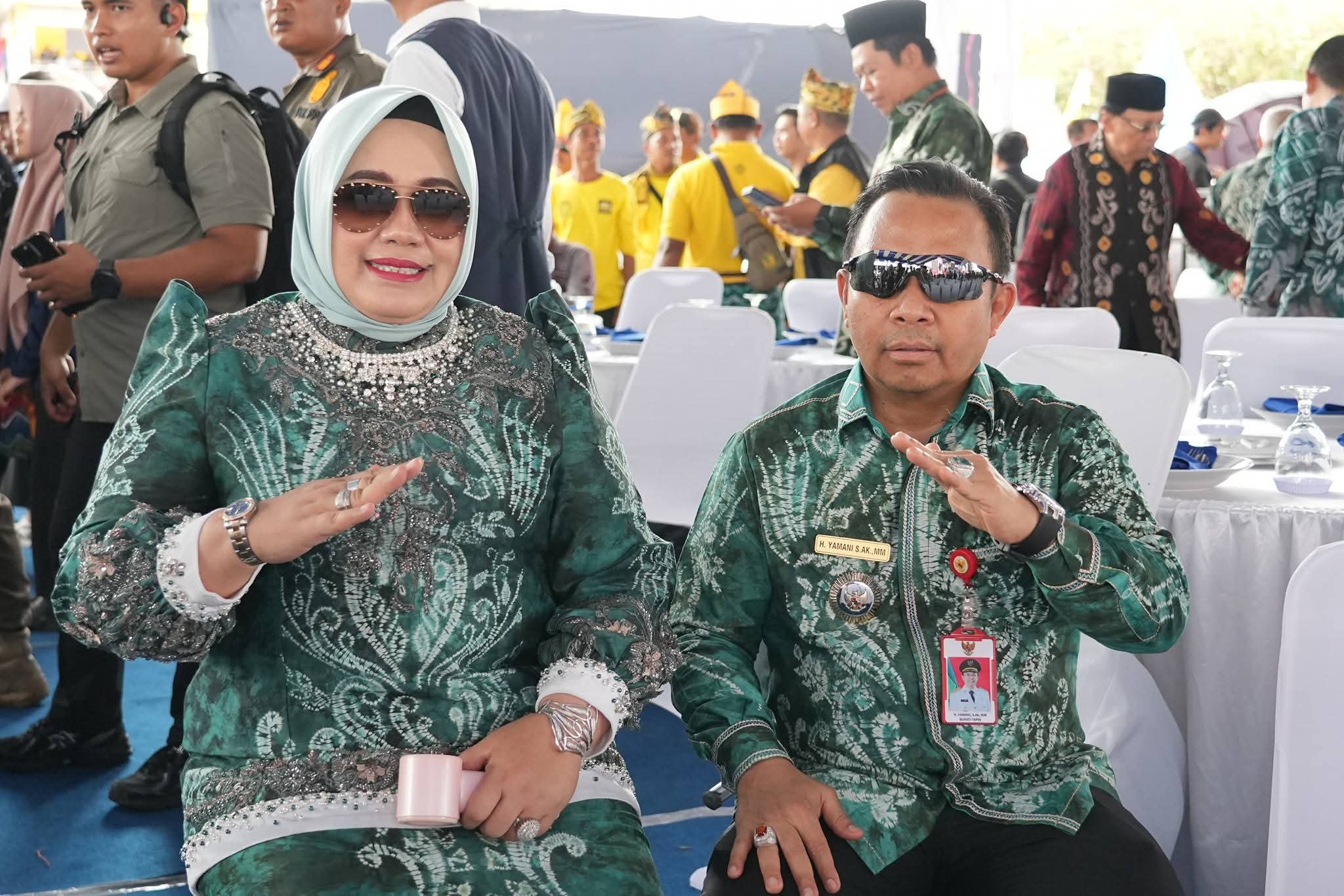 RANTAU,- Bupati Tapin H Yamani bersama Ketua TP PKK Hj Faridah Yamani saat menghadiri puncak peringa...