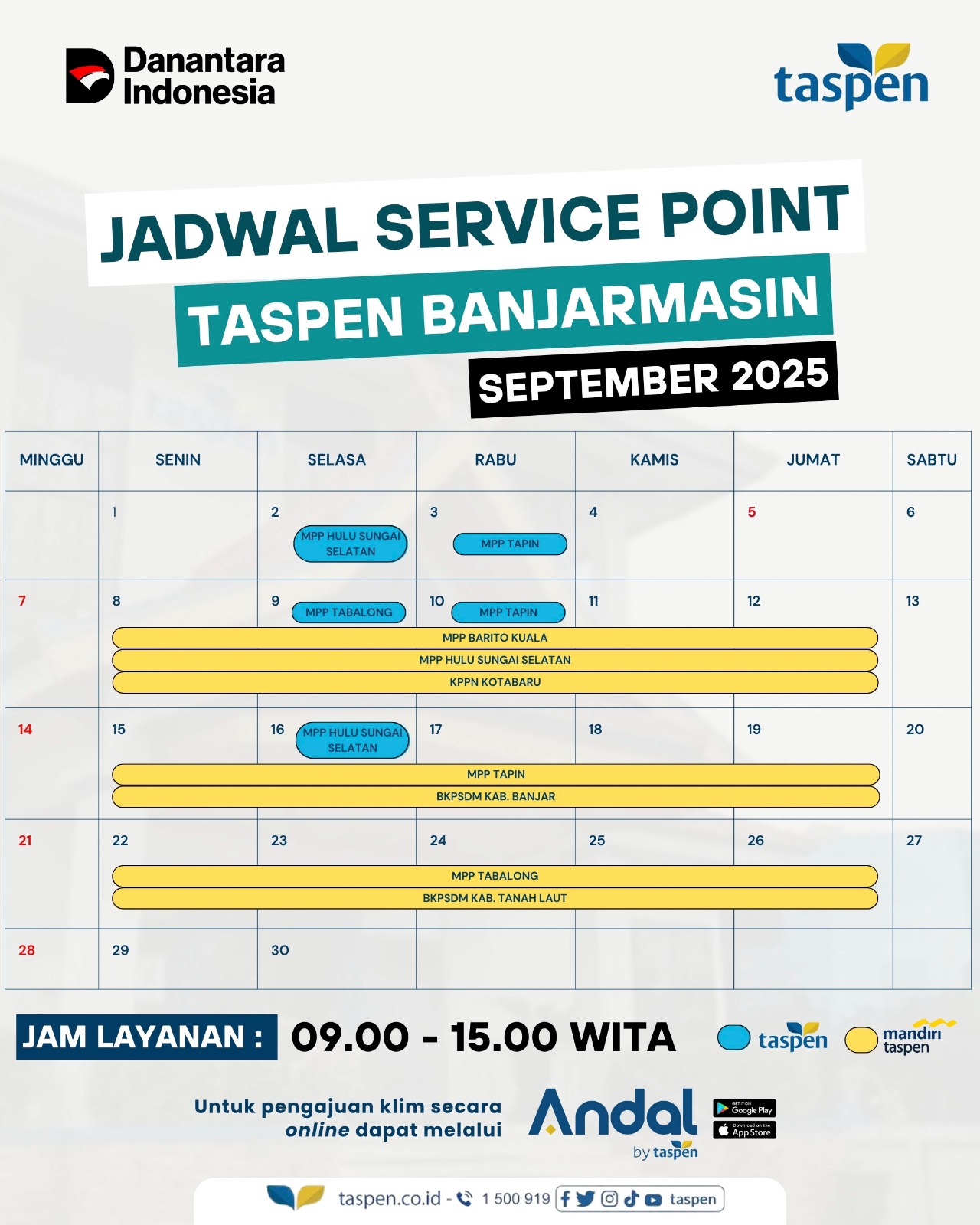 Jadwal Service Point Taspen Banjarmasin edisi Bulan September 2025