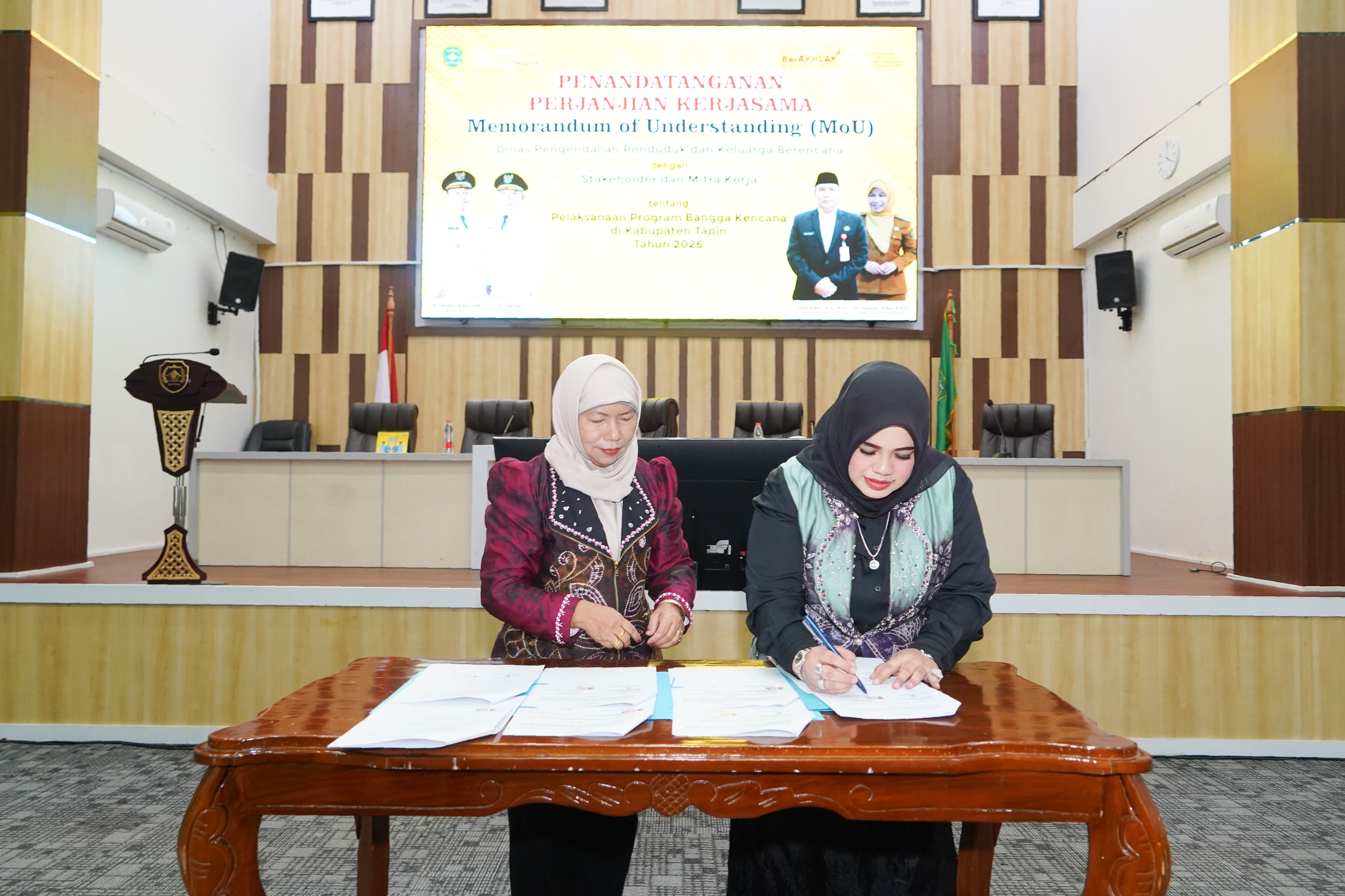 RANTAU,- Ketua TP PKK Hj Faridah Yamani bersama Kepala Dinas pengendalian penduduk dan keluarga bere...