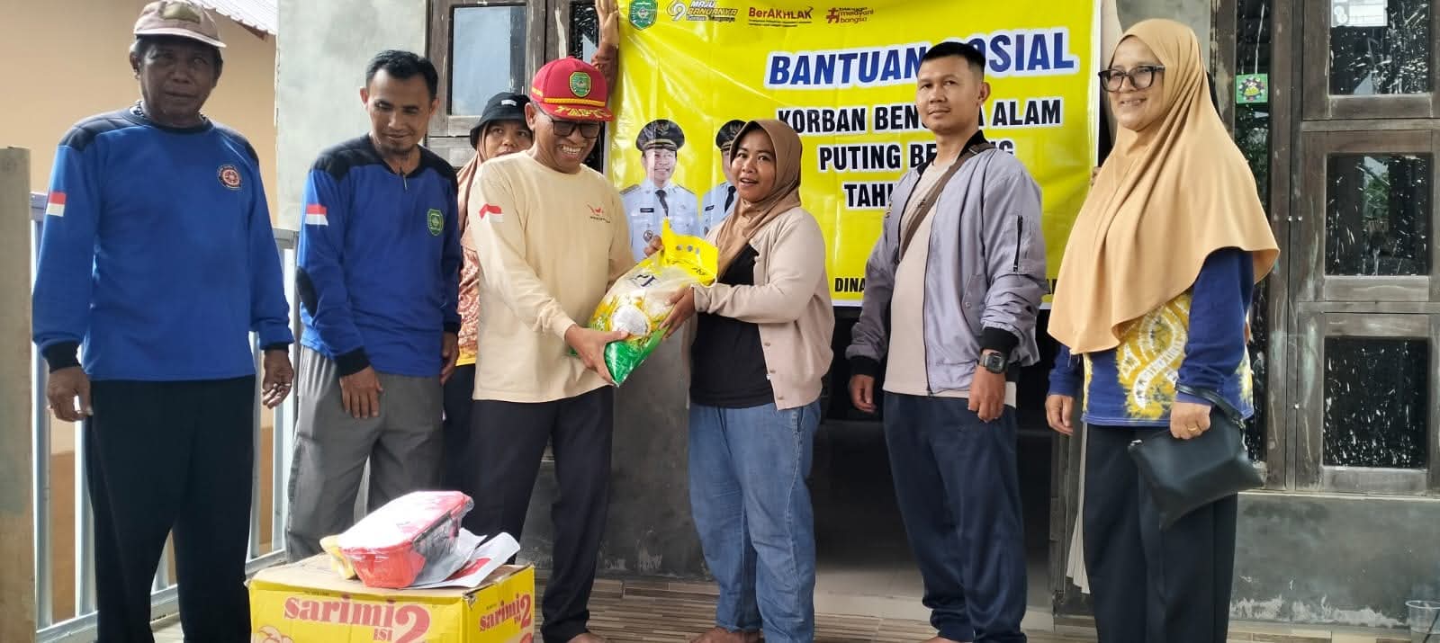 Kepala Dinas Sosial Tapin H Syafrudin SIP saat menyerahkan bantuan korban Bencana Angin Puting Beli...