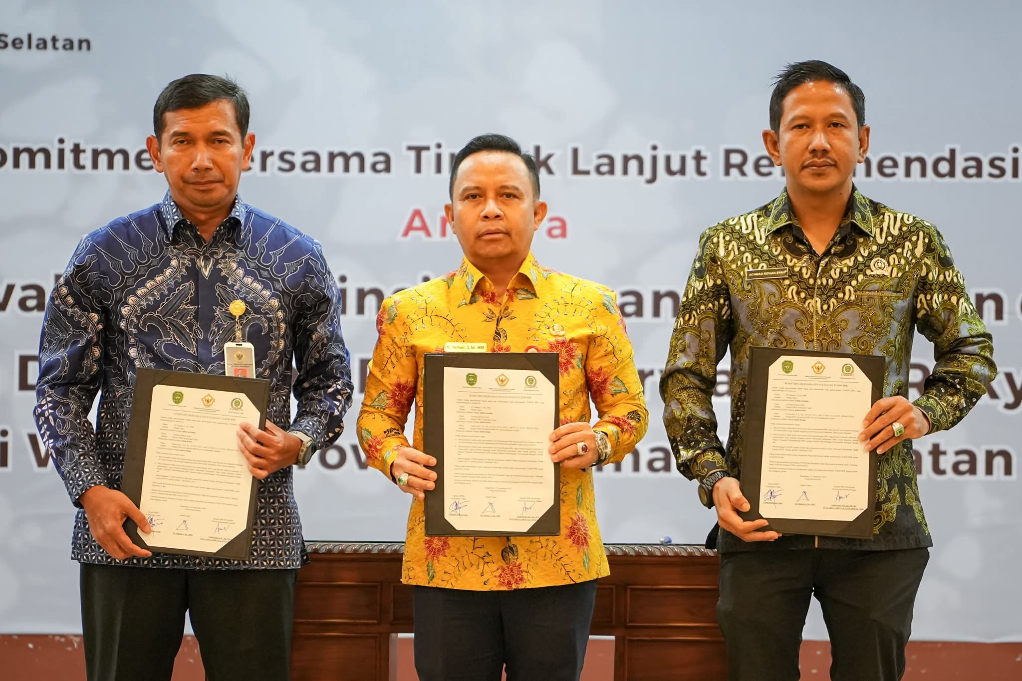 RANTAU,- Bupati Tapin H Yamani bersama Ketua DPRD Tapin Achmad Riduan Syah hadiri acara penandatanga...