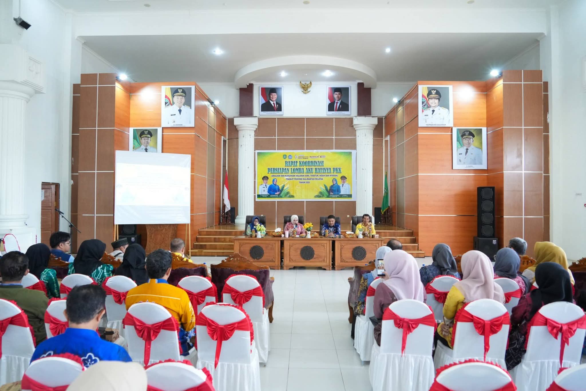 RANTAU,- Ketua TP PKK Hj Faridah Yamani memimpin rapat koordinasi dalam rangka persiapan pelaksanaan Lomba AKU HATINYA PKK (Amalkan dan Kukuhkan Halaman Asri, Teratur, Indah, dan Nyaman) Tingkat Provinsi Kalimantan Selatan Tahun 2026, bertempat di Aula PKK Kab.Tapin, Kamis 09/04/2026.