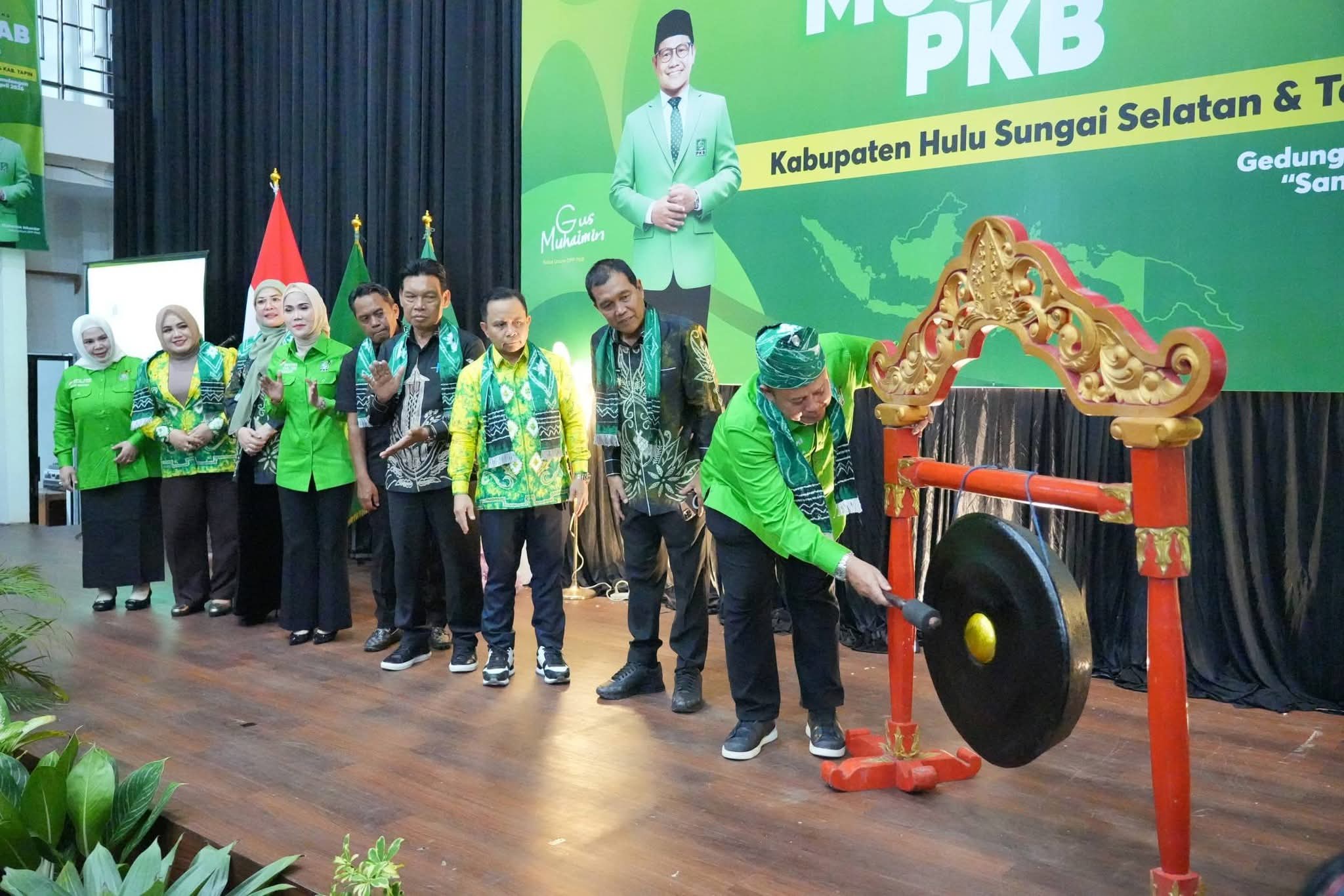 Bupati Tapin H Yamani beserta Ketua TP. PKK Hj Faridah Yamani saat menghadiri undangan musyawarah cabang (Muscab) Partai Kebangkitan Bangsa (PBK) di Kabupaten Hulu Sungai Selatan, Kandangan. Kamis (09/04/26).