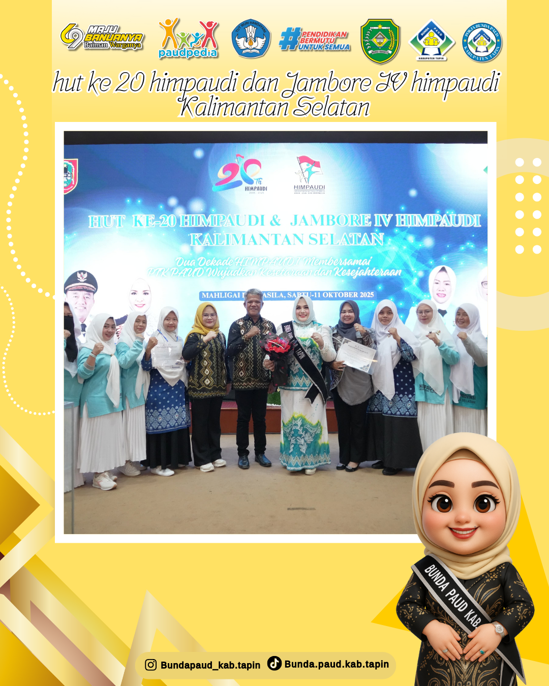 Bunda PAUD Kab. Tapin Hj. Faridah Yamani menghadiri acara HUT Himpaudi ke 20 dan Jambore IV Himpaudi...