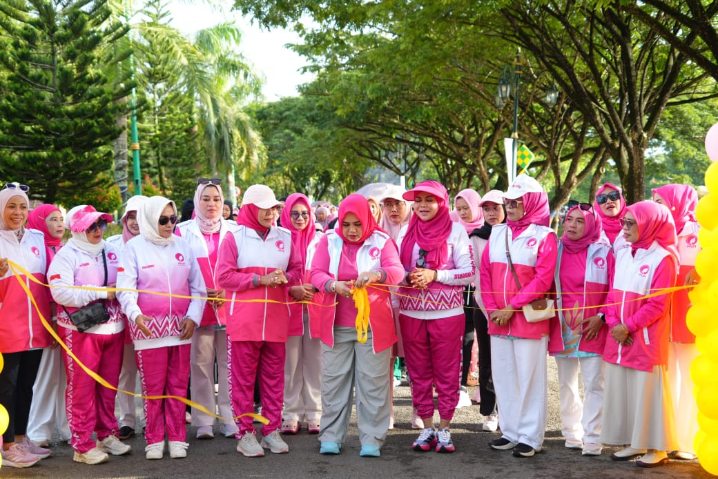 RANTAU,- Ditandai dengan pemotongan vita. Ketua TP PKK Hj. Faridah Yamani melepas peserta jalan seha...