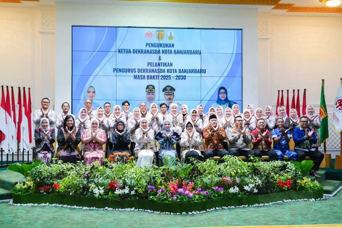 Ketua TP PKK Tapin Yang Juga Ketua Dekranasda Tapin Ibu Hj. Faridah Yamani saat Menghadiri Pengukuha...