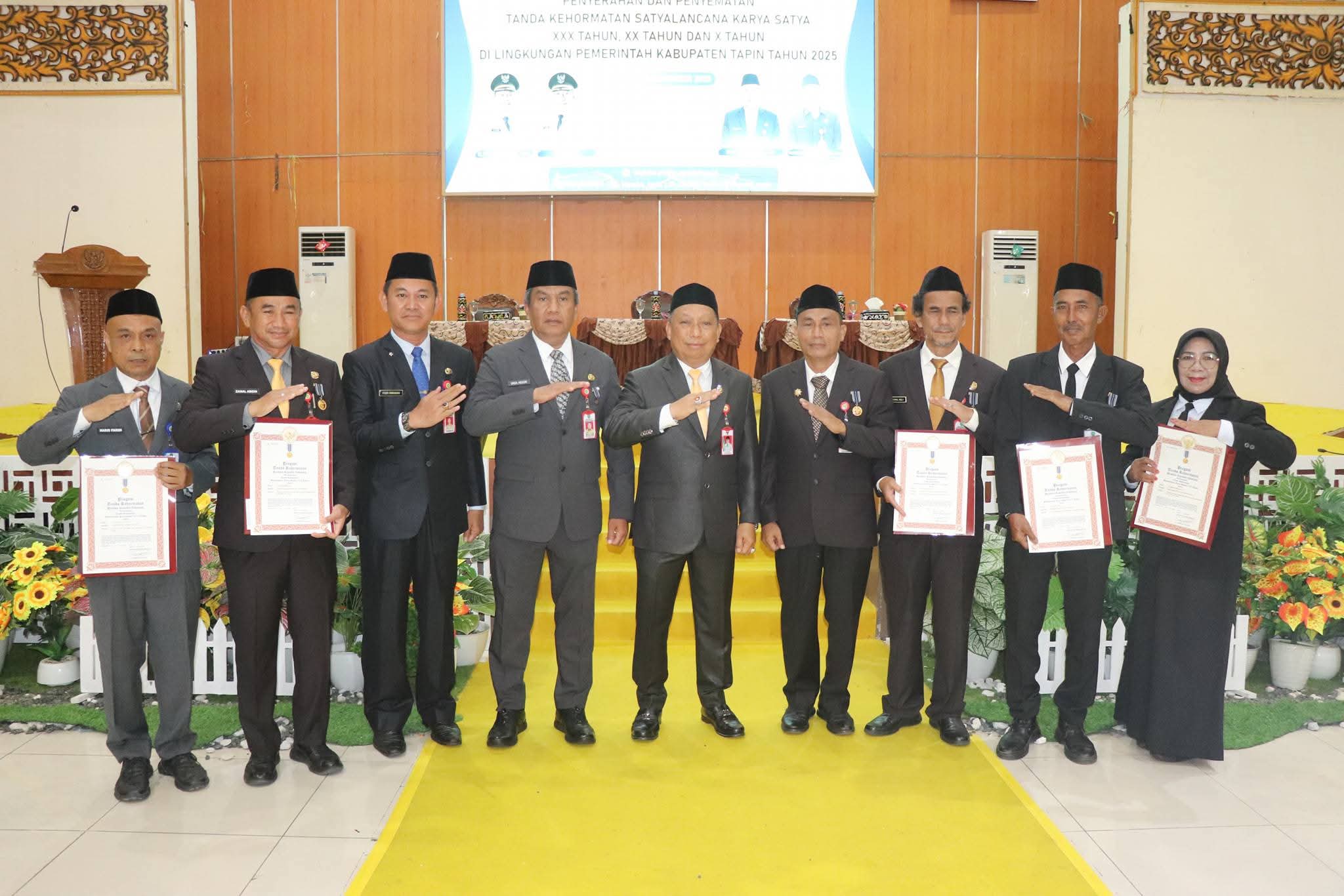 RANTAU, - Wakil Bupati Tapin H Yamani menyerahkan piagam penghargaan Satya Lencana kepada ASN masa t...