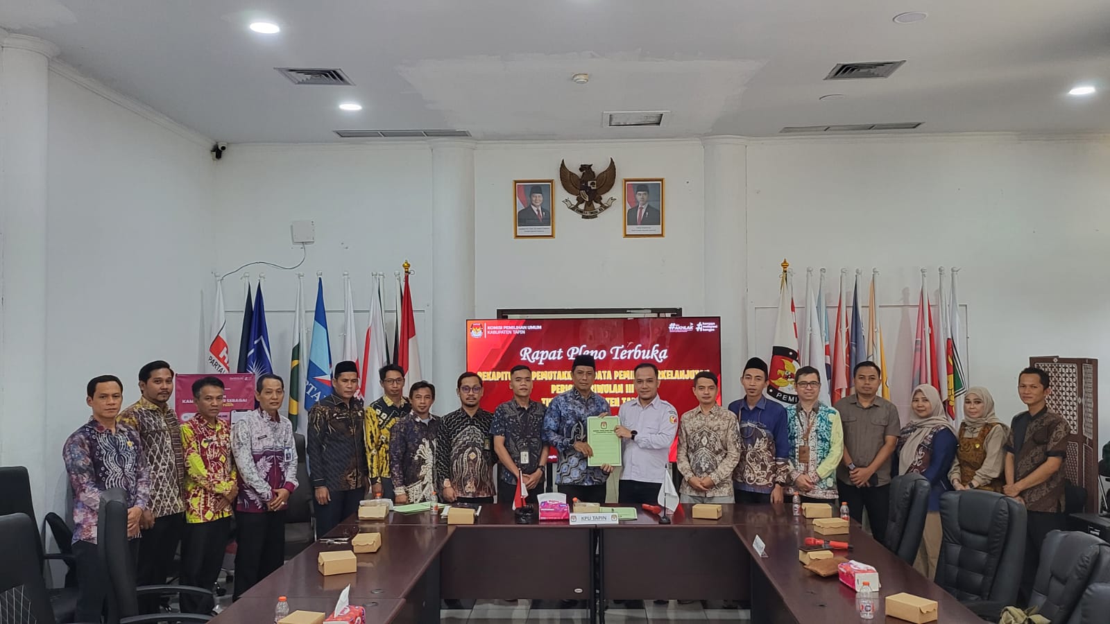 RANTAU,- Komisi Pemilihan Umum (KPU) Kabupaten Tapin menggelar Rapat Pleno Terbuka Rekapitulasi Daft...