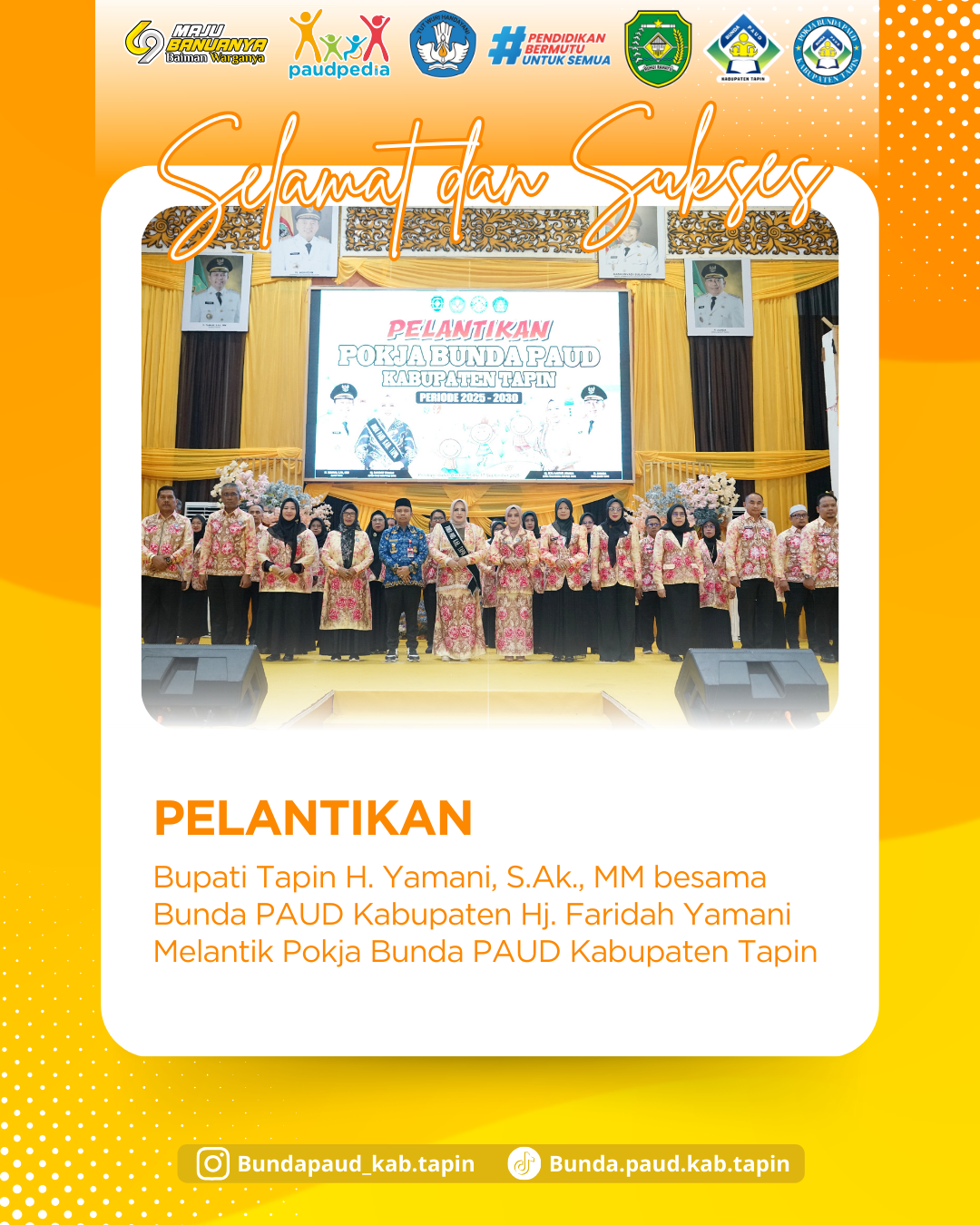 📷 Lensa Kegiatan Bunda PAUD KabupatenBupati Tapin H. Yamani, S.Ak., MM di dampingi oleh bunda Paud...